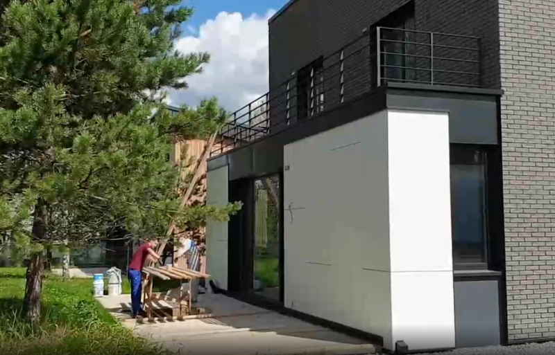 На этот раз поселок элитной недвижимости, лиственничная терраса. Первым слоем наносится "Масло для террас" от Borma Wachs, заколерованное в голубовато-серый цвет.