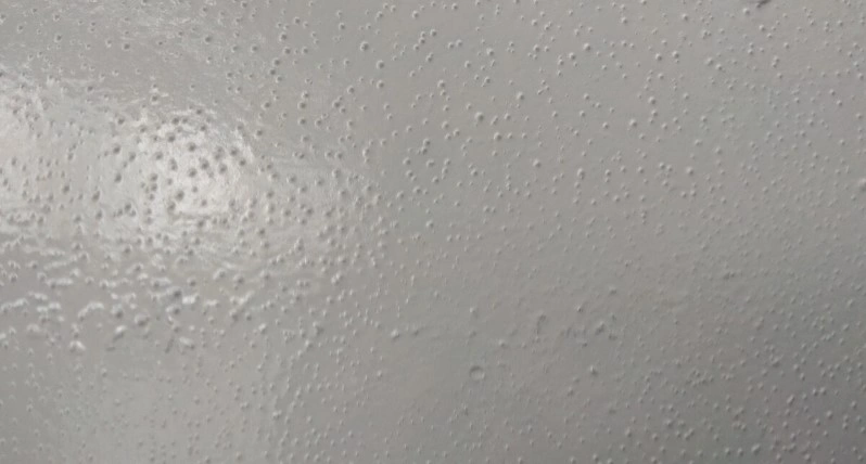 - Неправильные условия сушки. Быстрое испарение растворителя во время сушки вызывает образование пузырьков воздуха, особенно если покрытие слишком толстое или слишком быстро высыхает. Также высокая влажность воздуха или неправильная температура в помещении во время сушки также могут способствовать образованию пузырьков.