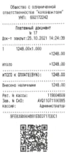 Образец документа, подтверждающего оплату: