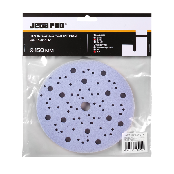 Прокладка защитная на машинку 150 мм JETA PRO, 67 отверстий. Прокладка на поролоне, толщина поролона 5 мм. Предназначена для шлифовальной машинки с диаметром подошвы 150 мм.