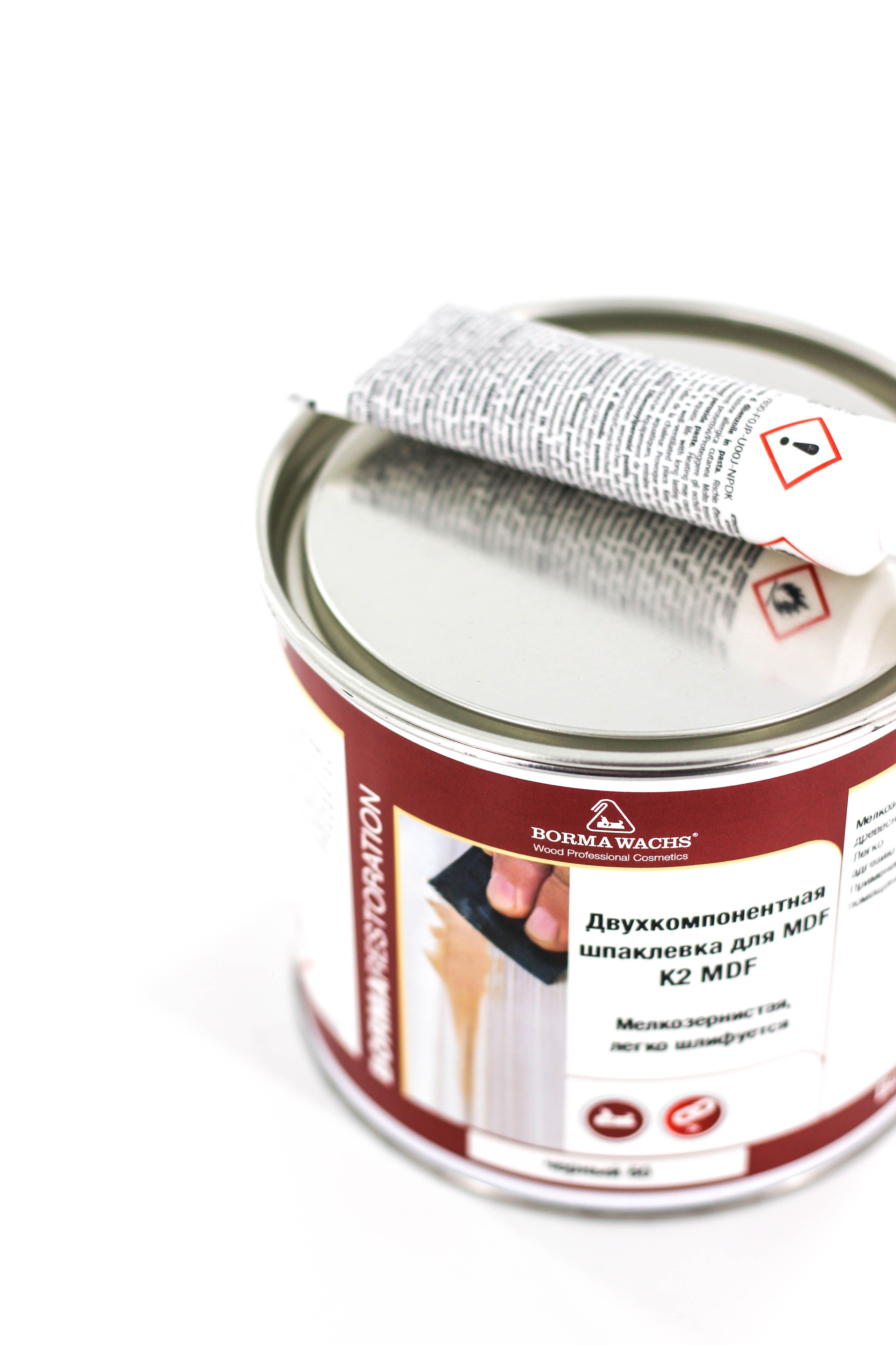 Двухкомпанентная шпатлевка Borma Hozmasse K2 MDF - шпаклевочный состав с полиэфирными смолами и специальными минеральными наполнителями с добавлением древесного волокна. Особенно рекомендуется для реставрации старинной мебели (переделка деталей из дерева) и всего, что предусматривает использование дерева (дома, светильники, лодки и т. д.).