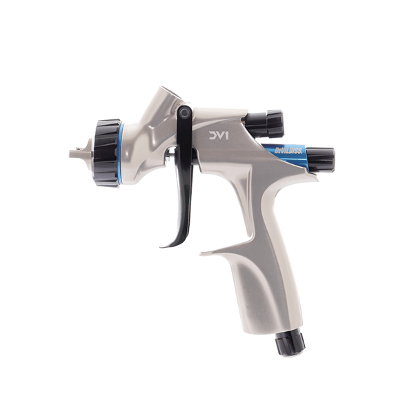 Универсальная конструкция корпуса краскораспылителя Devilbiss DV1, позволяет использовать его с двумя воздушными головами и наносить любые лакокрасочные материалы с превосходным качеством.