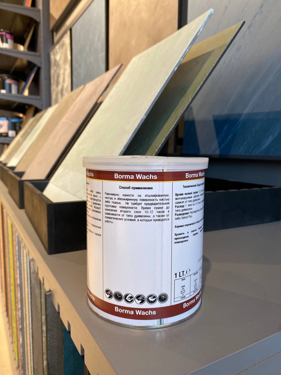 Конечный результат колеровки зависит от породы древесины, на который наносится материал, и может не совпадать с цветом на образце.