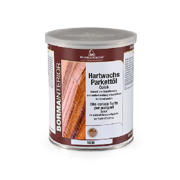 Hard wax Parquet Oil Quick 1030 - средство на основе натуральных масел, усиленных качественными смолами, для отделки деревянных полов в один или два слоя. Он идеально подходит для защиты необработанных деревянных поверхностей. Устойчивый к воздействию воды и ко всем типам пятен, облегчает последующую отделку и уход за любым необработанным паркетом. Добавление специальных восков позволяет получать поверхности естественного эффекта, с той же устойчивостью к царапинам, но более высокой мягкостью на ощупь и увеличением непрозрачности.