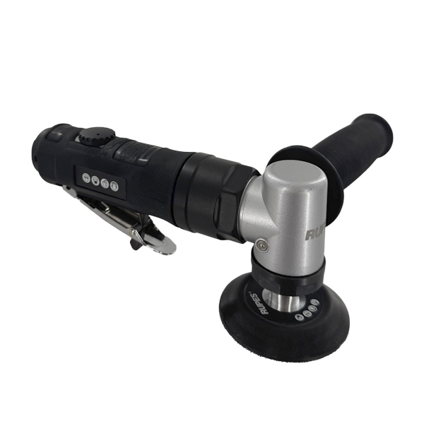 Полировальная машинка угловая пневматическая с регулятором оборотов и с рукоядкой с правой стороны.