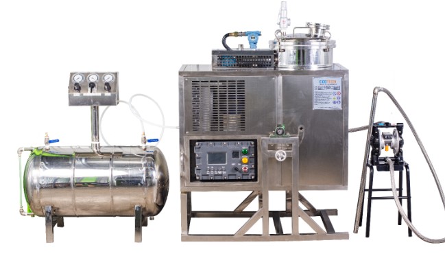 Позволяет регенерировать загрязненный растворитель, используемый при промывке или обезжиривании промышленных изделий, в чистый. Используя принцип дистилляции, установка регенерации позволяет выделить из использованного растворителя следующие твердые элементы: смолы, полимеры, пигменты, краски, масла и т.д.. Выпаривание растворителя происходит в испарительном баке с оболочкой, наполненной диатермическим маслом, которое нагревается электрическим резистором. Пары растворителя направляются в конденсор охлаждаемый воздухом или водой.