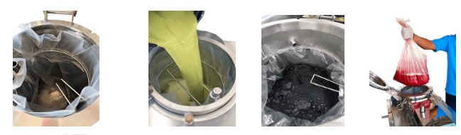 В случае, если загрязнителем являются твердые элементы (краски, пигменты, клей и т.д.), для выгрузки остатка используются одноразовые пакеты EcoBag, которые позволяют выполнить операцию по очистке бака быстро и наиболее безопасно для персонала.