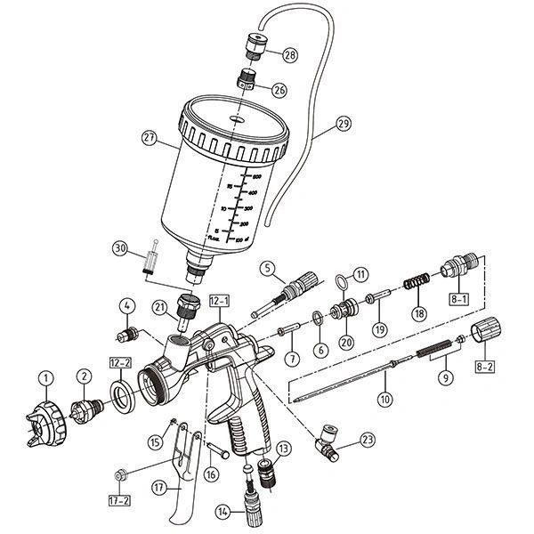 - прочный алюминиевый корпус с анодированием, сопла и иглы из нержавеющей стали обеспечивают продолжительный срок службы краскораспылителя, а также облегчает чистку и его техническое обслуживание;