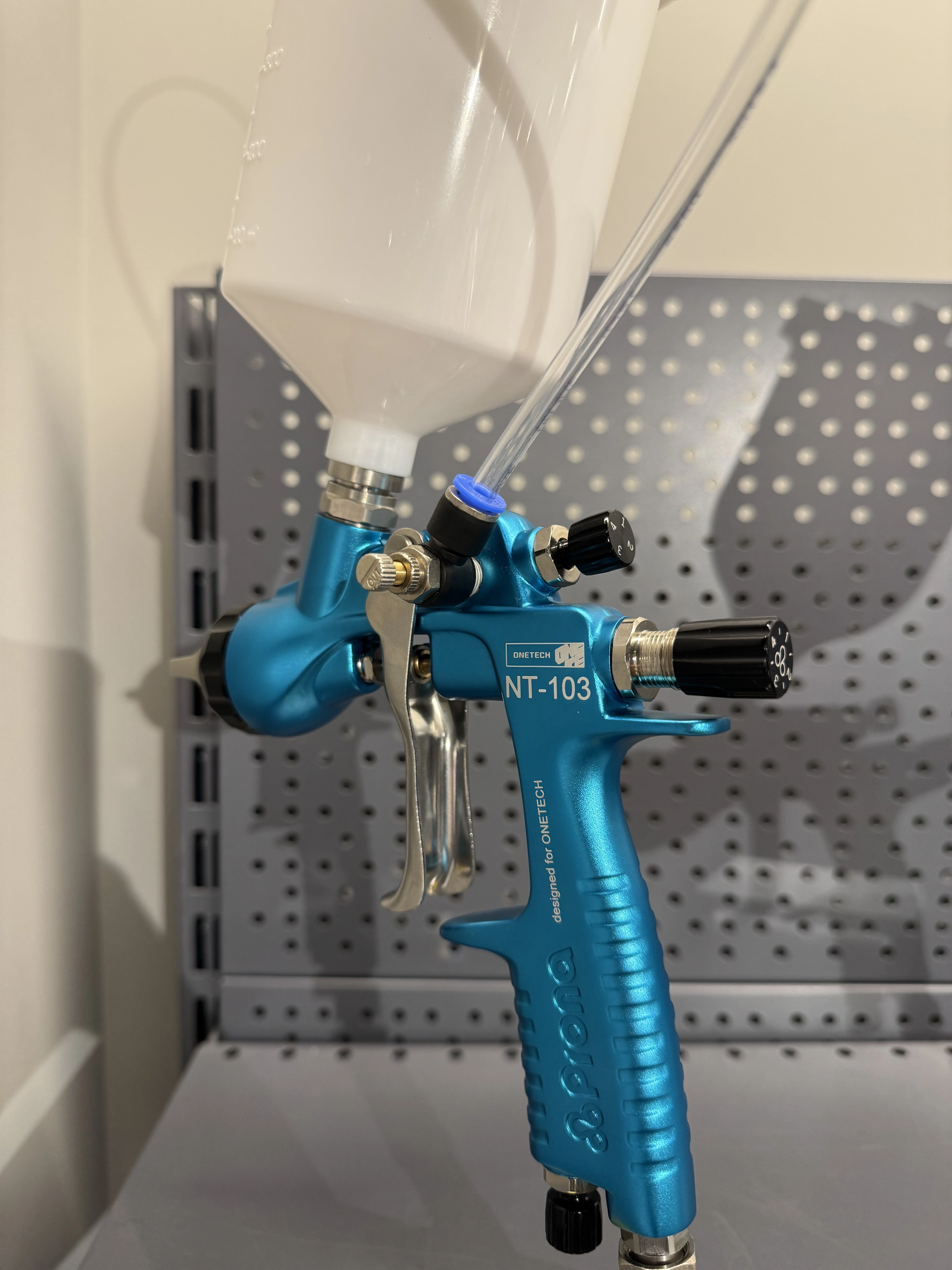 ONE TECH NT-103 - это ручной краскораспылитель с верхним бачком и регулируемым дополнительным давлением на материал. Давление в материальный бачок создается с помощью подачи сжатого воздуха от краскораспылителя. Внутреннее давление в бачке настраивается с помощью отдельного регулятора. Этот краскораспылитель - идеальный инструмент для нанесения высоковязких материалов, таких как структурные, цинконаполненные и водоразбавимые материалы.