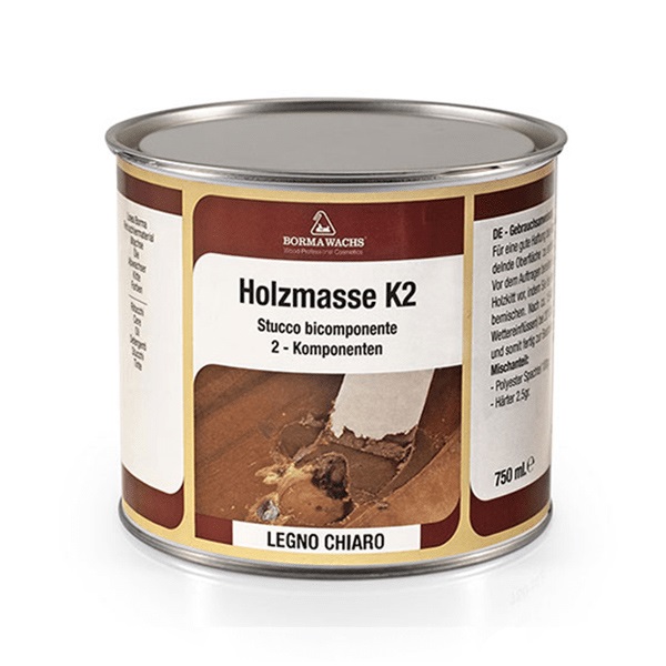 Двухкомпанентная шпатлевка Borma Hozmasse K2 - шпаклевочный состав с полиэфирными смолами и специальными минеральными наполнителями с добавлением древесного волокна. Особенно рекомендуется для реставрации старинной мебели (переделка деталей из дерева) и всего, что предусматривает использование дерева (дома, светильники, лодки и т. д.).