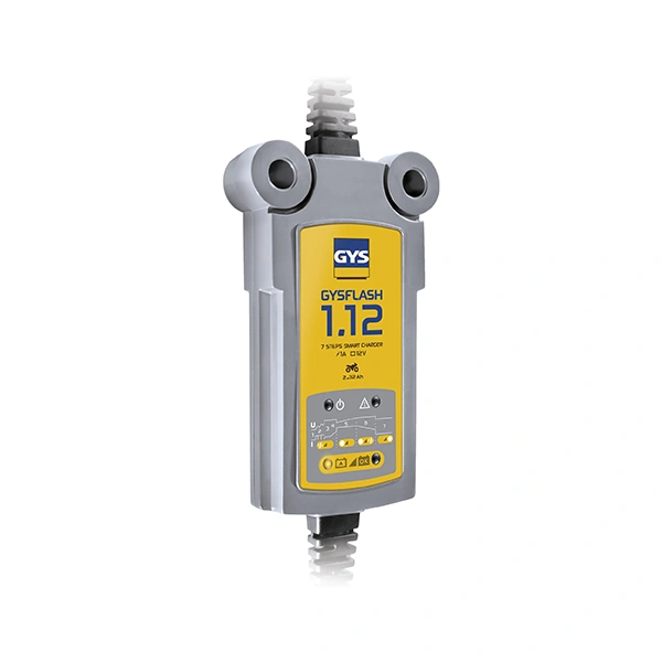 Специально разработанный для зарядки АКБ 12В мотоциклов, гидроциклов, картов или газонокосилок GYSFLASH 1.12 имеет умную кривую зарядки в 7 этапов, обеспечивающую оптимальную зарядку и в 2 раза быстрее, чем традиционное зарядное устройство.