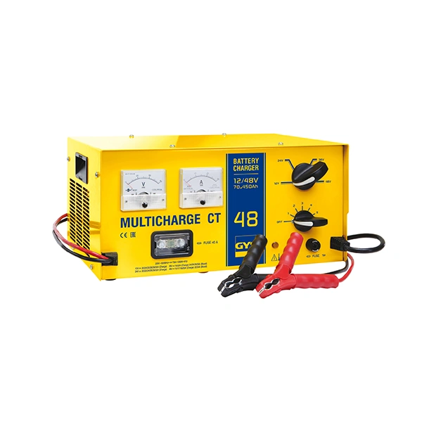 Зарядное устройство для зарядки свинцовых аккумуляторов с жидким электролитом. MULTICHARGE CT 48 может заряжать несколько аккумуляторов 12 В одновременно. Надежный, он может адаптироваться к различным суровым условиям и особенно к мастерские.